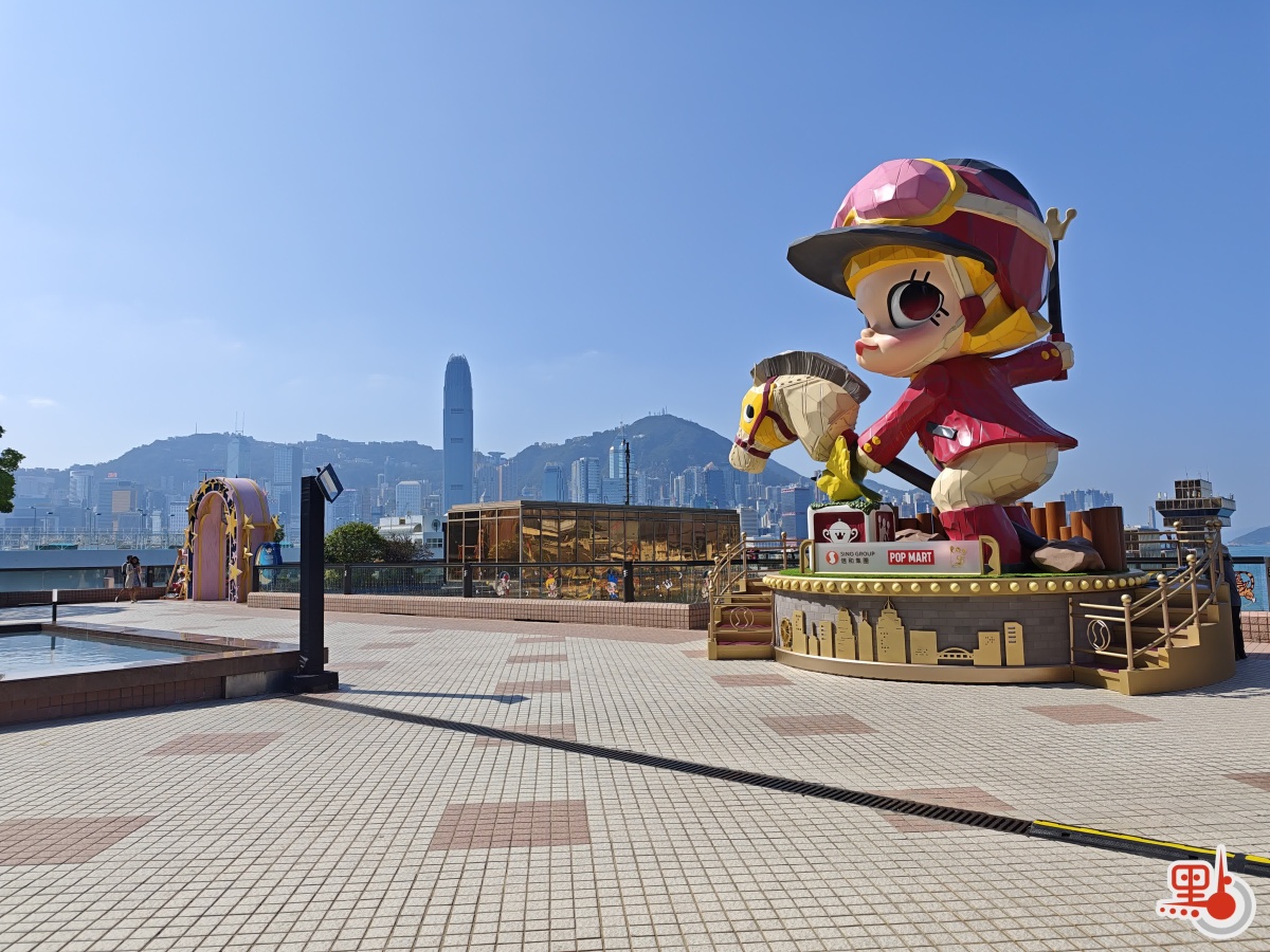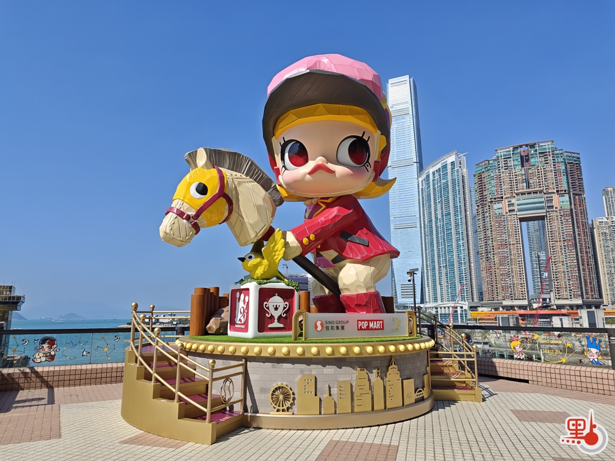 記者今日在中港城海豚池平台現場所見,可愛的MOLLY們已整齊亮相。甫入平台,7米高的騎師造型MOLLY便映入眼帘。據介紹,其造型為馬年新春特別設計,是目前全港最大的MOLLY雕像。