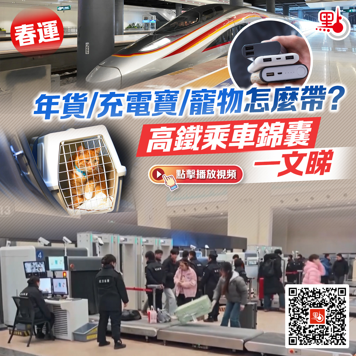 【點新聞報道】今天(2月2日)是2026年春運第一天,不少人已經踏上旅途。回家過年,總想帶些好吃的好玩的。哪些東西不能帶上高鐵?帶不上高鐵該怎麼辦?點新聞整理實用錦囊,帶你了解高鐵行李攜帶規範!