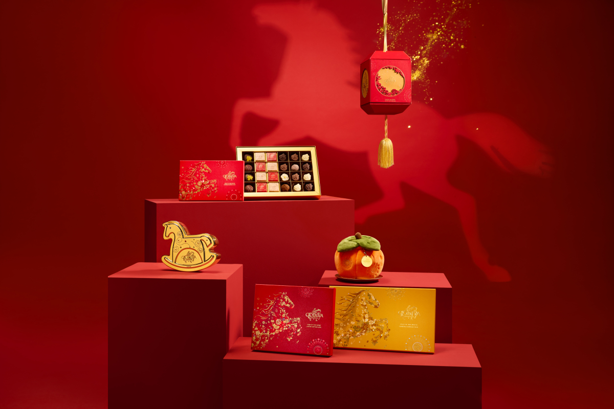·7款新年限定禮盒:鎏彩紅金禮盒、木馬造型巧克力禮盒、毛絨柿子造型禮盒、新年燈籠造型巧克力禮盒、及其他3款節日元素設計禮盒