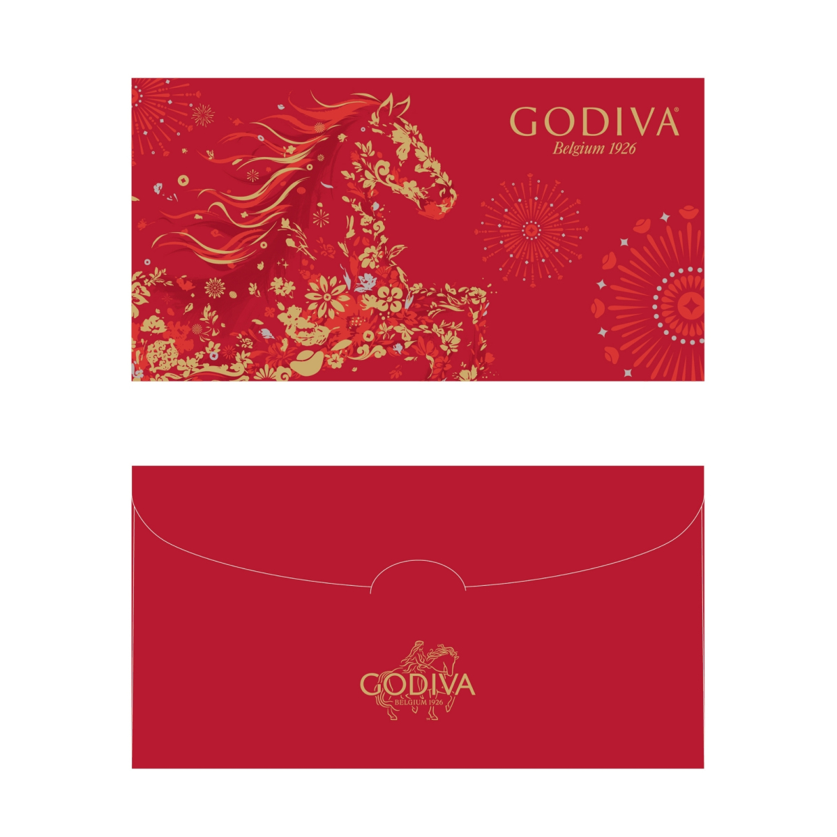 新年片裝巧克力禮盒28片裝/新年燈籠造型巧克力禮盒30顆裝,VIP會員享8折;購買任何新年系列產品,獲贈GODIVA馬年利是封一包。