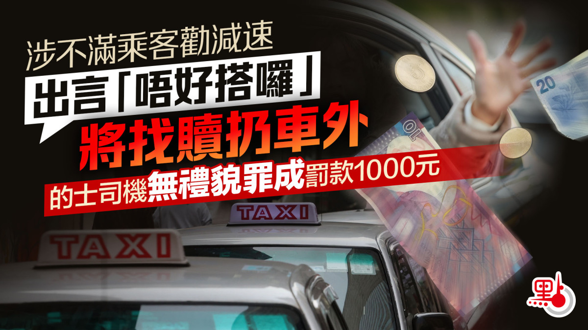 【點新聞報道】2024年一名的士司機被指在女乘客勸告減速時,反譏道:「你唔好搭囉,我出嚟搵食㗎。」其後又涉嫌在到達目的地後將找贖的20元紙幣扔出車外。被告早前否認一項無禮貌及不守規矩罪,案件經審訊後,被告今日(2月3日)在西九龍裁判法院被裁定罪名成立,判罰1000元。