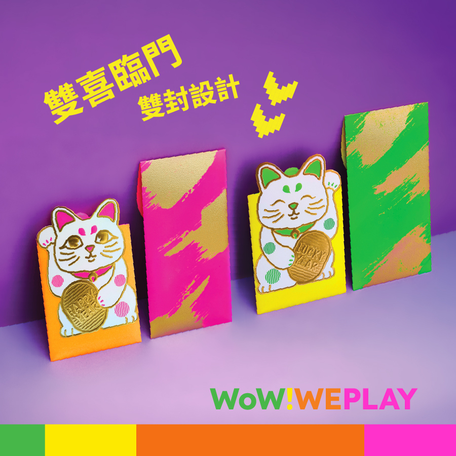 一套兩款的「LUCKY MEOW」利是封套裝以大膽配色與趣味符號為設計,兩隻LUCKY MEOW分別手持LUCKY YEAR及HAPPY YEAR金牌,以俏皮姿態送上滿載喜悅與好運的新年祝願。