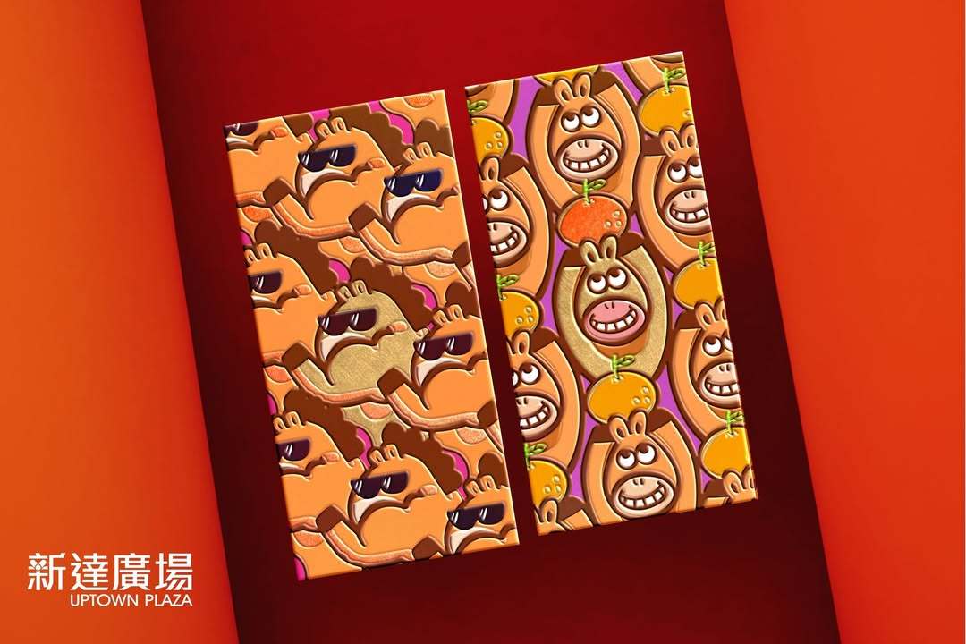 由香港視覺設計師與藝術家阿吉與小萬設計的兩款「馬年吉祥」利是封套裝,以幽默搞笑的風格表現賀詞,配上雙倍祝福「精力充沛」小福馬及「吉星高照」大桔馬,活力滿滿好運齊來。