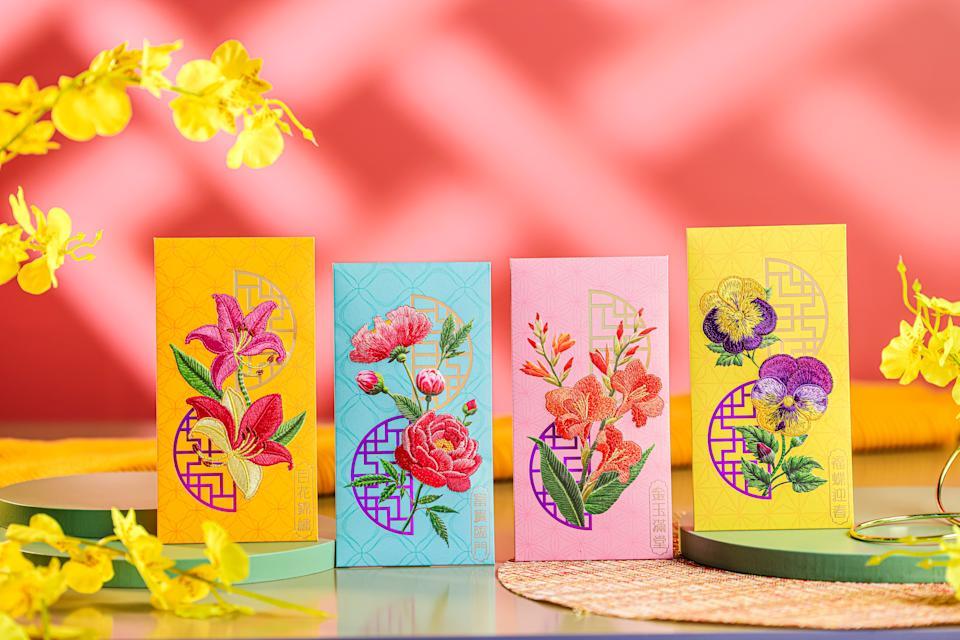「花漾錦繡」利是封共四款設計,分別以百合、牡丹、劍蘭及蝴蝶蘭四種賀年花卉為主題,增添濃厚喜氣與祥瑞氛圍。