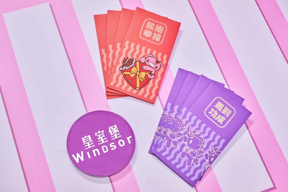 一套兩款「KYUBI×Gloomy『熊』抱幸福」利是封套裝,設計滿載新春喜氣,其中一款呼應馬年主題,以Gloomy奔馳獨角獸,在波浪紋的背景中盡情奔馳,並備「『熊』情蜜意」及「大展『熊』圖」揮春,祝福馬年大展鴻圖。