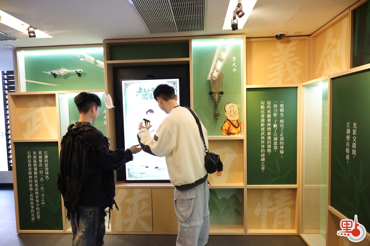 最後步入三樓「武俠不死」展區,既可觀摩新派武俠世界中的經典武器,亦可透過「武俠DNA測試」互動遊戲,發掘自己內心深處的俠客本色。香港文學舘常設展展廳二亦同步更新內容,聚焦呈現新派武俠小說的文學脈絡,系統性地介紹其發展與精髓。