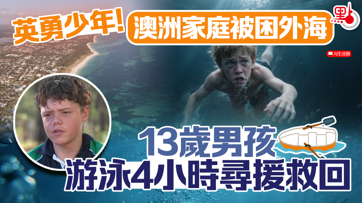 【點新聞報道】澳洲出現「超人少年」!據澳媒報道,一名13歲少年與家人劃獨木舟出海遊玩時被捲往外海,為尋求救援,他獨自在海中游了4小時回到岸上,最終成功救回母親、弟弟與妹妹。