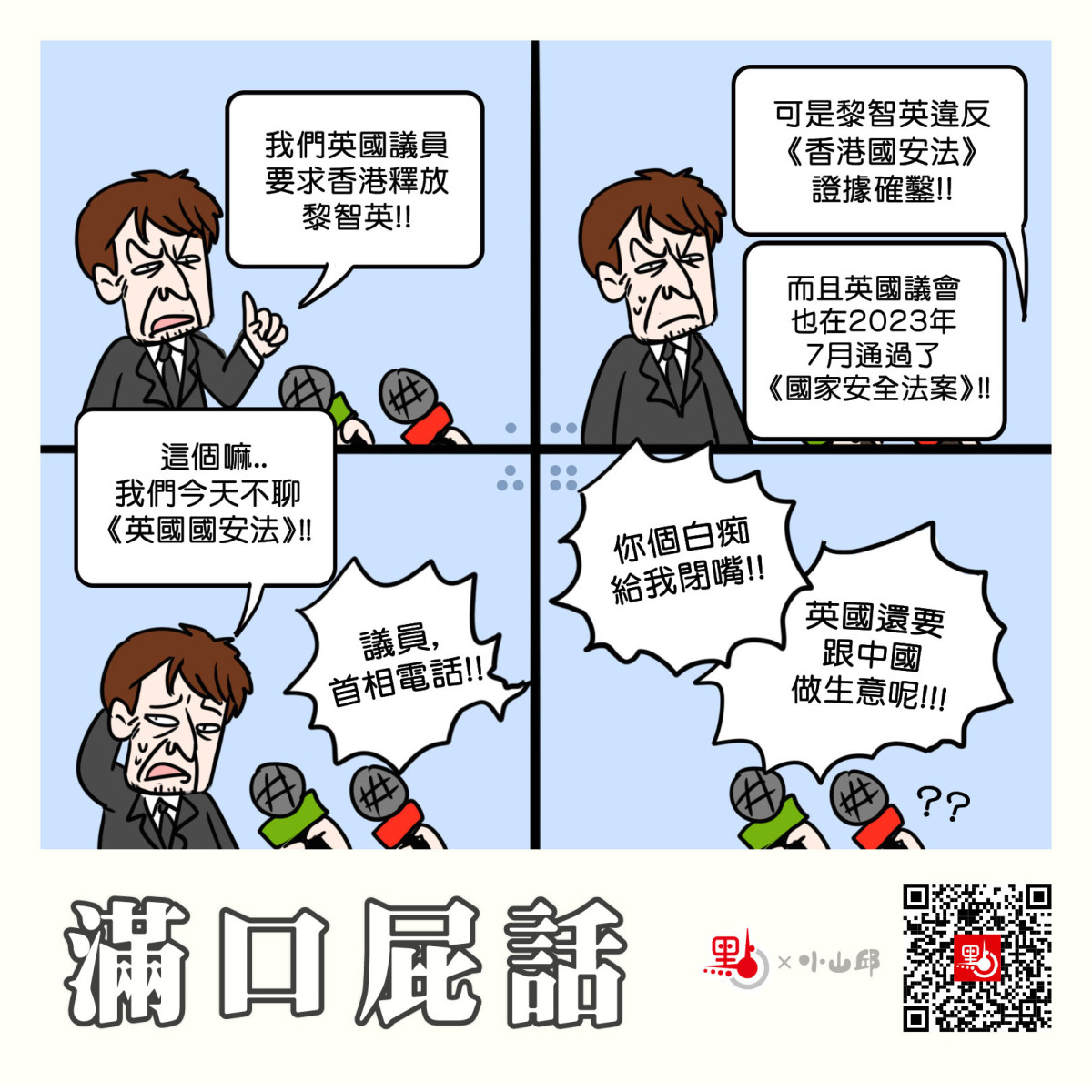 一如其他干預黎智英案的外國政客,這些英國國會議員也用上「人權」、「新聞自由」等作為藉口。不過,黎智英案件根本就是犯罪,而不是實踐人權或行使新聞自由。關於煽動的問題,黎智英利用當時的《蘋果日報》,乃是在煽動抗爭,包括煽動年輕人上街;至於串謀勾結外國勢力的罪行,其實黎智英在香港國安法生效前後,都在請求外國「制裁」香港,這種通敵行為,即使是放在英國也不會容許。