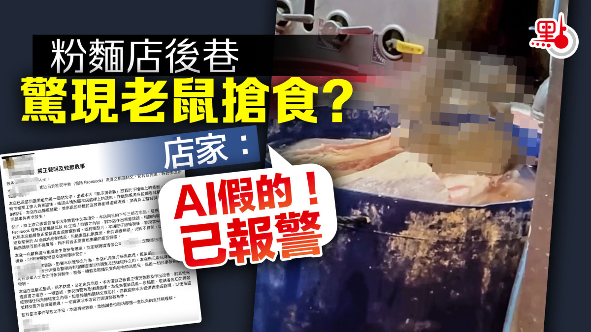 然而,事件在今日(7日)上午出現轉折。約10時許,涉事粉麵店於Facebook的「大埔街坊群組」中發布了一份「嚴正聲明及致歉啟事」,承認將蒸籠飯置於手推車上確屬管理疏忽,並就此向顧客致歉。但對於老鼠影片,店方指出片中出現「多項不合理且常見於AI合成內容的特徵」,懷疑影片經過人工智能生成或惡意剪輯,屬於不實指控,已構成誹謗。店舖表示已就事件報警處理,目前案件正由警方及律師跟進。
