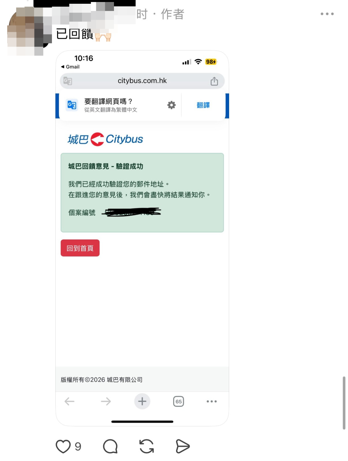 城巴回覆傳媒查詢時證實事件,表示該輛79X號線巴士於昨晚約10時在吐露港公路行駛期間,有乘客因同行小童不適向車長求助,車長認為情況緊急,遂將巴士駛至大埔那打素醫院附近讓乘客下車求診,其後巴士繼續行程。城巴正了解事件詳情,並感謝同車乘客諒解。