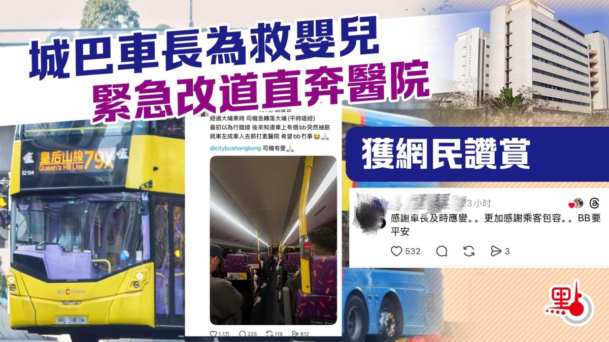 【點新聞報道】一名網民在社交平台分享特殊乘車經歷,指昨晚(6日)乘坐往皇后山方向的城巴79X路線時,司機在途經大埔時突然駛入平常不會行經的區域。起初以為司機行錯路線,其後得知事出有因,車上一名嬰兒突然抽筋,需緊急送醫。為讓嬰兒盡快獲得救治,司機當機立斷將巴士駛往大埔那打素醫院,讓該乘客下車求診,事後巴士繼續行程。
