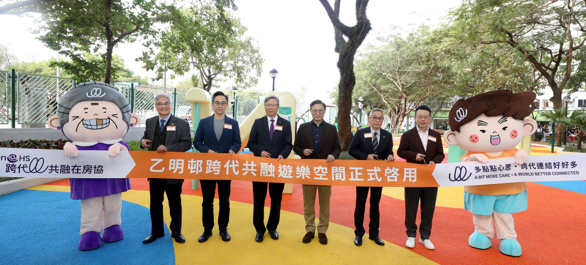 房協主席凌嘉勤表示,房協近年將以往積極推動和實踐的居家安老理念,提升至建立跨代共融的居住環境和社區。「跨代共融遊樂空間」的誕生,不單是為乙明邨及周邊社區締造一個全新及長、中、青、幼都適合玩樂的好去處,亦代表「跨代共融在房協」計劃正式啟動。房協會全方位將「跨代共融」貫穿各個業務範疇,涵蓋項目規劃、屋邨改善項目、物業管理、社區及長者服務,以至商業租務和建立房協獨特的跨代共融品牌,繼續善用「房屋實驗室」的角色。