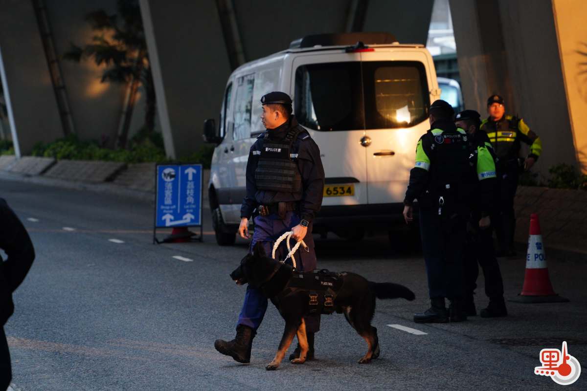 早上8時25分左右,載有黎智英的「鐵甲威龍」囚車抵達西九龍裁判法院,現場有警方反恐特勤隊人員持槍戒備。
