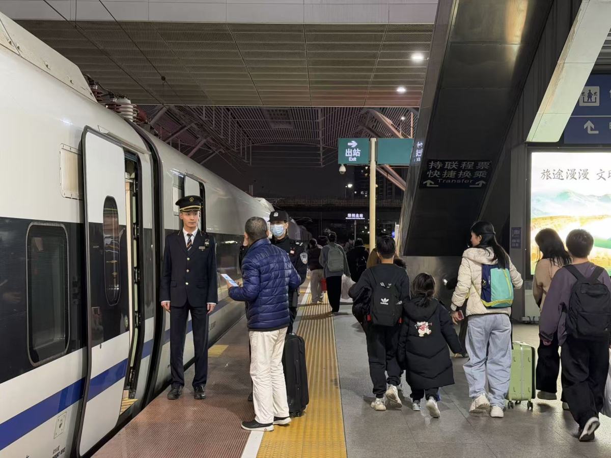 「我是臨時決定帶小孩回老家過年,提前沒有關注購票信息。等想買票的時候,才發現沒票了。這兩天提交了12306候補訂單,突然看到這班夜間高鐵,成功買到車票。」一位帶小孩的旅客開心地說,「凌晨上車,睡一會兒,不耽誤早上陪爸媽吃早飯呢。」