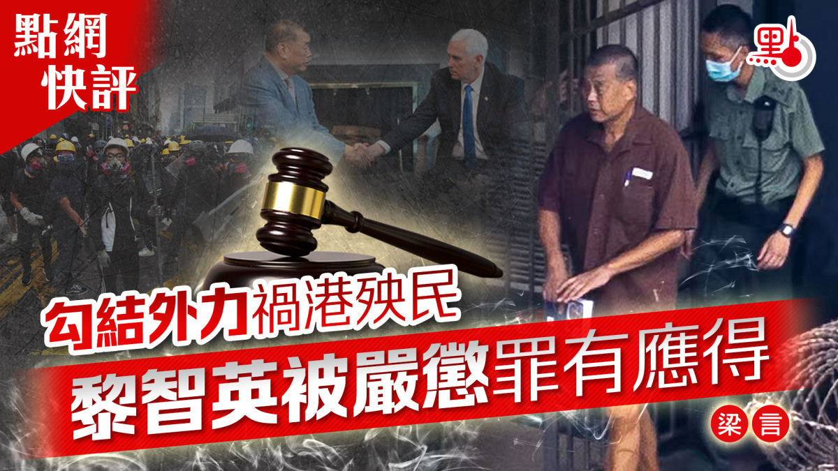 壹傳媒創辦人黎智英與《蘋果日報》三間相關公司去年被裁定「串謀勾結外國勢力」及「串謀發布煽動刊物」三罪罪成,今日(9日),法庭宣判黎智英判囚20年。審訊多時、轟動全港的黎智英案,終於有了判決,判決除了是嚴懲黎智英勾結外國勢力等嚴重罪行,法庭判決也正告全社會,危害國家安全,必須負上應有罪責!多年來,黎智英煽動煽暴、勾結外力,如今終要為自己的惡行承擔後果,既還了香港社會一個公道,也令公義及法治得以彰顯。