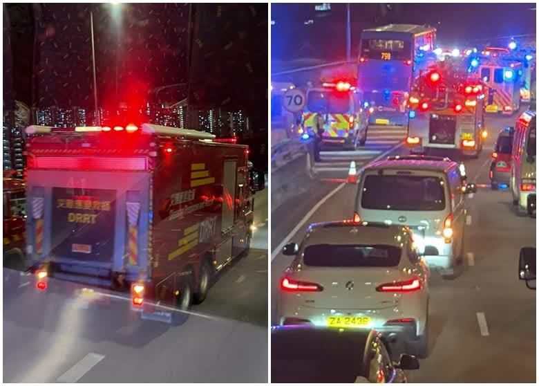 有網上圖片顯示,意外後,多輛消防及救護車到場處理,消防處的災難應變救援隊奉召支援。運輸署表示,觀塘繞道(往油塘方向)近麗港城部分行車線封閉,上址交通繁忙。