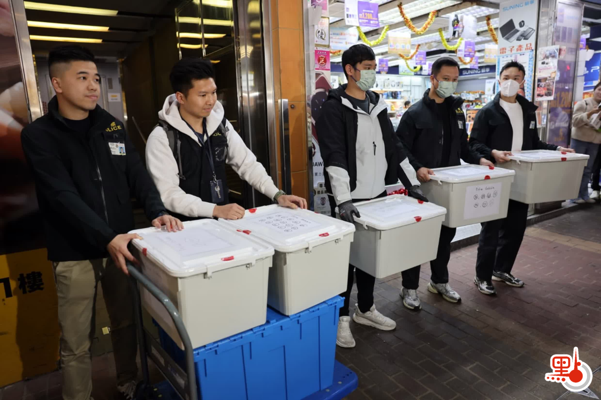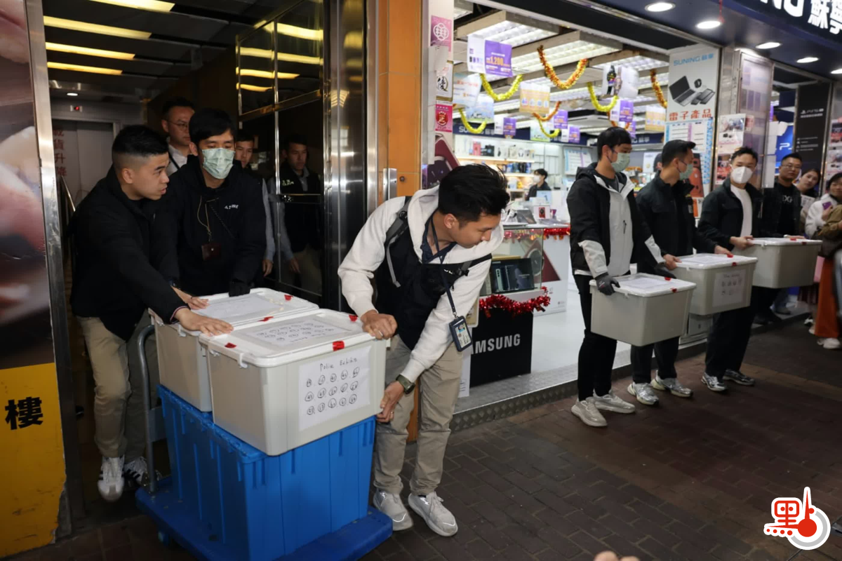 【點新聞報道】警方商業罪案調查科(商罪科)繼續針對近期揭發的「新型碰瓷黨」展開調查行動,繼上周三(4日)採取首輪執法行動,拘捕3男1女(37至69歲)包括一對夫婦及兩名醫生涉嫌串謀詐騙後,今日(9日)再搜查一間位於旺角彌敦道招商永隆銀行中心樓上的律師行,至晚上約8時半檢走至少6箱證物作進一步調查。
