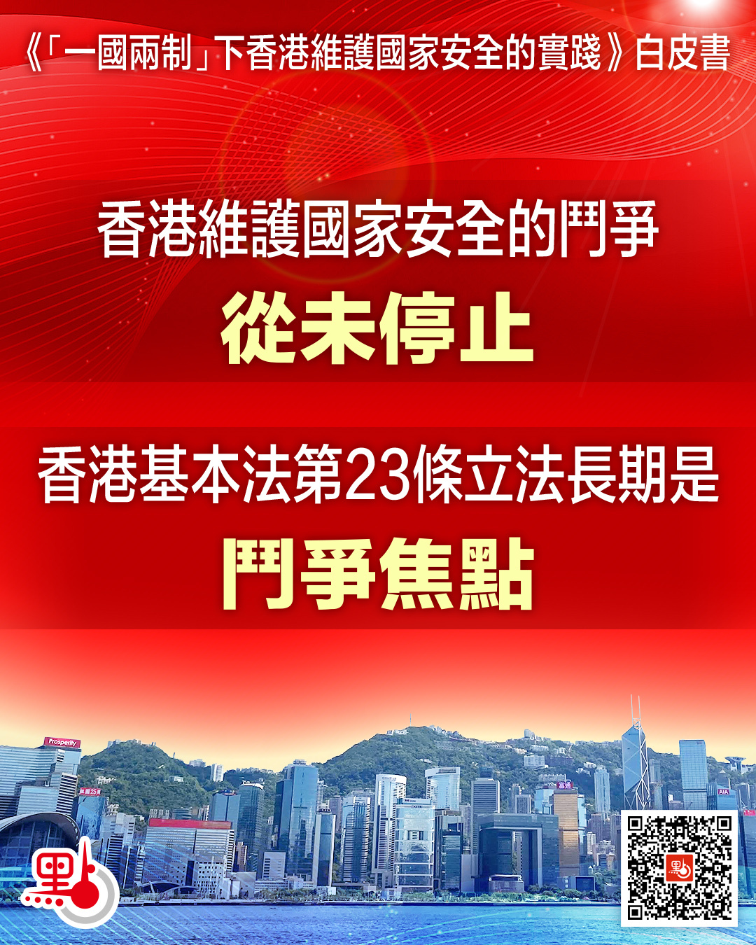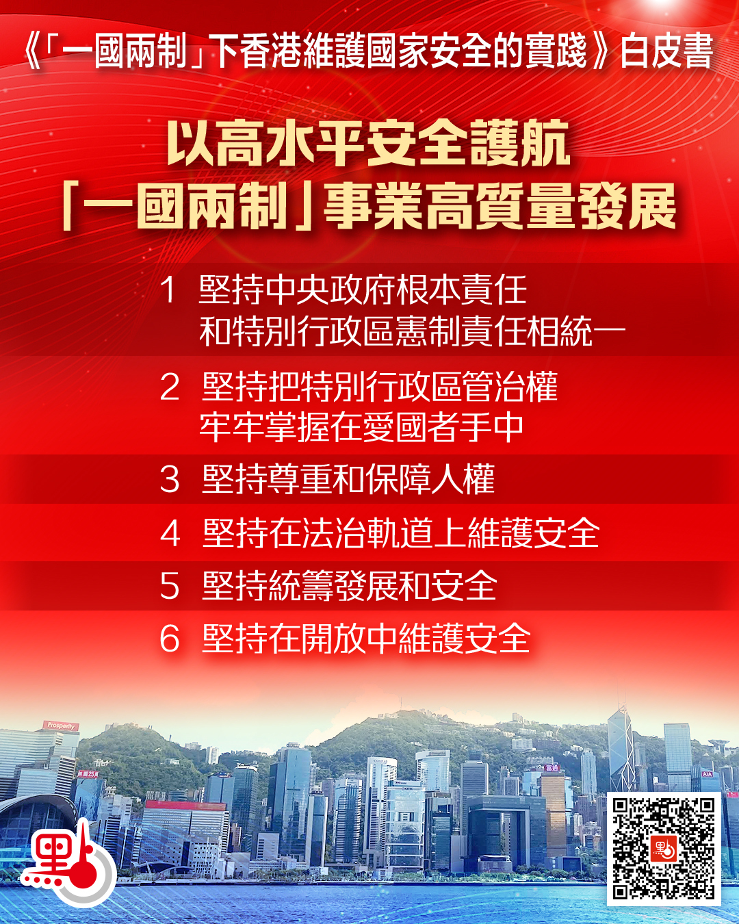 【點新聞報道】國務院新聞辦公室今日(2月10日)發布《「一國兩制」下香港維護國家安全的實踐》白皮書。白皮書除前言、結束語外分為五個部分,分別是香港維護國家安全的鬥爭從未停止、中央政府對香港有關的國家安全事務負有根本責任、香港特別行政區切實履行維護國家安全的憲制責任、香港實現由亂到治走向由治及興、以高水平安全護航「一國兩制」事業高質量發展。白皮書都有哪些要點?快來多圖睇清!