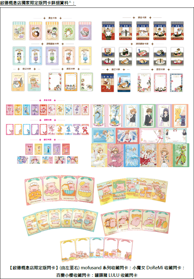 啟德概念店扭卡專區,特設12部扭卡機震撼登場,分別提供3部偶像主題的扭卡機和9部人氣IP角色主題的扭卡機,當中更有以超強人氣IP百變小櫻、mofusand、小魔女DoReMi及罐頭豬LuLu為主題的獨家限定版閃卡。