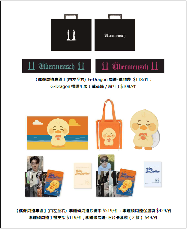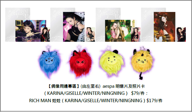 店內更特設人氣偶像周邊專區,將搜羅本地與海外偶像的熱賣周邊精品及小卡,今期推出韓國人氣歌手G-Dragon、演員李鍾碩、近期大熱的K-pop女子組合aespa及MEOVV打頭陣。