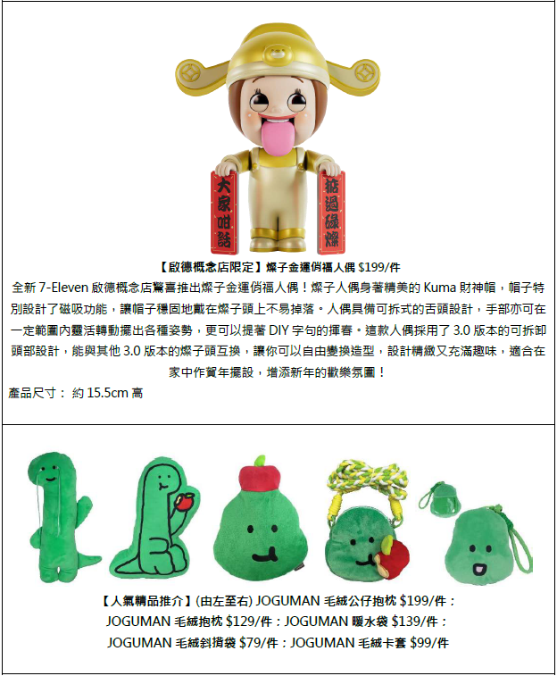 踏入新一年,全新7-Eleven概念店於啟德矚目揭幕,結合革新零售空間設計、多元化購買體驗,打造精品潮玩新地標。全新啟德概念店首設7-Eleven最大的人氣精品及盲盒專區、偶像周邊專區、扭卡專區,店內雲集多款人氣IP角色精品、熱賣盲盒、偶像周邊以及最新潮玩。