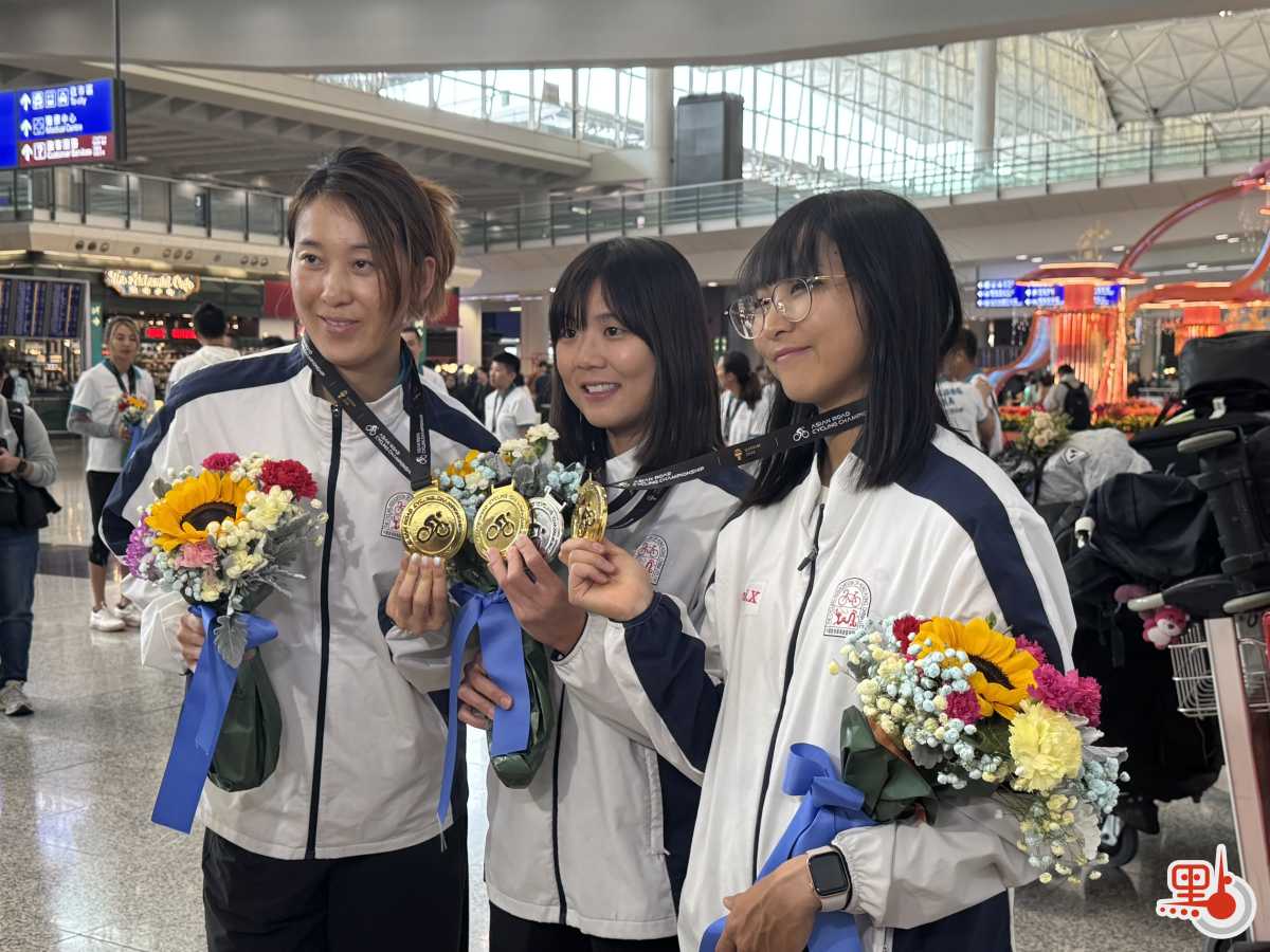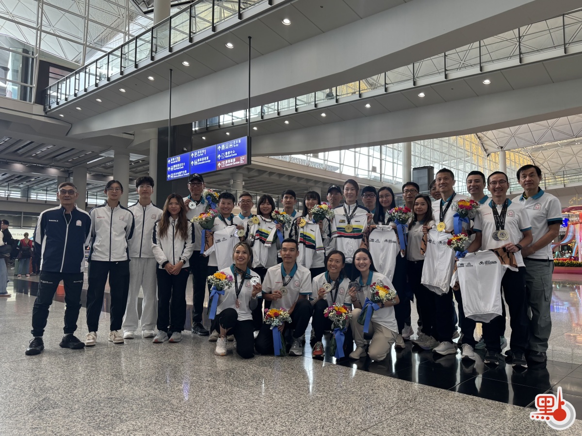【點新聞報道】港隊單車運動員剛於沙特阿拉伯舉行的2026亞洲公路單車錦標賽中,首次奪得男女子混合隊際計時賽金牌及女子精英組計時賽銀牌,其中運動員李思穎、梁穎儀、楊倩玉等港隊成員今日(10日)下午返港,並接受訪問。