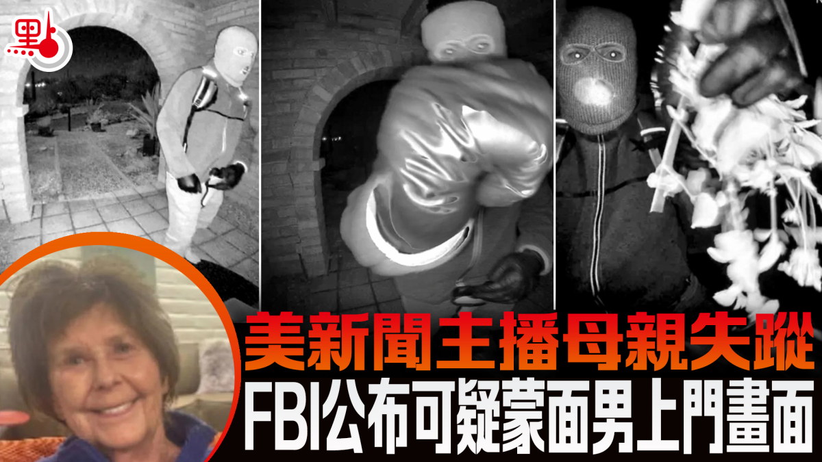 【點新聞報道】美國新聞主播格思里(Savannah Guthrie)之母、84歲的南希(Nancy Guthrie)失蹤10天,聯邦調查局(FBI)周二(10日)公布的新影片顯示,一名戴着全罩式面罩的人出現在主播母親家門外,疑似干擾門口攝影機。