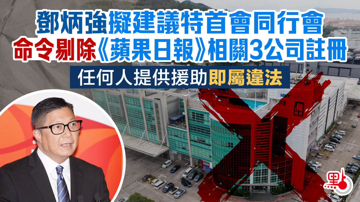【點新聞報道】繼高等法院原訟法庭裁定《蘋果日報》相關三間公司危害國家安全罪行罪名成立及作出判刑後,保安局局長鄧炳強今日(11日)按香港國安法第31條及《公司(清盤及雜項條文)條例》(第32章)第360C條展開相關程序,分別向《蘋果日報》相關三間公司發出書面通知,讓該三間公司可在保安局局長向行政長官會同行政會議提交建議命令公司註冊處處長將該三間公司自公司登記冊中剔除之前作出申述。