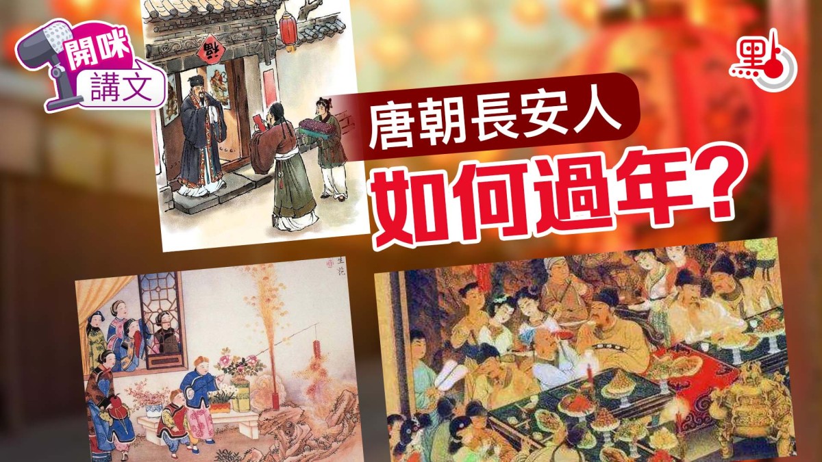 新年第一天,唐人稱為「元日」,朝廷要舉行隆重的朝會典禮。文武百官和外國使節都要着正式的朝服進宮向皇帝朝賀,皇帝則會賞賜宴席犒賞群臣,藉此彰顯皇家的權威。在民間,一早起來,人們就會立一根長桿,掛上絲帛、彩紙製成的長條狀旗子,叫做「長幡」或「春幡」,祈求新年風調雨順。這天長安人要喝兩種飲品:屠蘇酒和椒柏酒。這兩種酒都是加入了中藥製成的藥酒,喝了能祛風驅邪,強身健體。喝酒還要講規矩,必須從年齡最小的人開始,「從少起至大,逐人各飲少許,則一家無病。」這天的餐桌上還有一道必備的菜肴:五辛盤,一道由五種帶辛味的蔬菜組合而成的涼菜。具體用哪五種蔬菜,史籍有不同記載,但蔥、蒜和韭菜是其中常用的搭配。中醫認為辛味食物可祛除濁氣、培養陽氣,春天吃對健康大有助益。後來逐漸有人用餅裹着蔬菜吃,跟今天的春餅吃法差不多。長安人元日不待在家裏,而喜歡出門社交。他們或是親自登門給親朋好友拜年,或是去鄰居家串門蹭飯(稱為「傳坐」);最愛湊熱鬧的人,則會去各大寺廟聆聽「俗講」:一種多人合作、以通俗生動的語言來講解佛經的說唱表演。