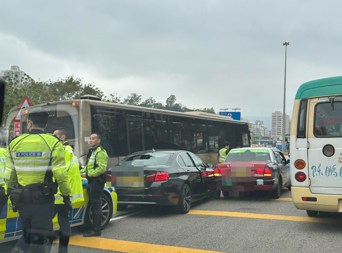救護人員接報趕至,據報的士女司機頭暈不適,另有兩名警員受輕傷。由網上短片可見,涉事私家車被夾在巴士及的士之間,大批警車趕抵事故現場。