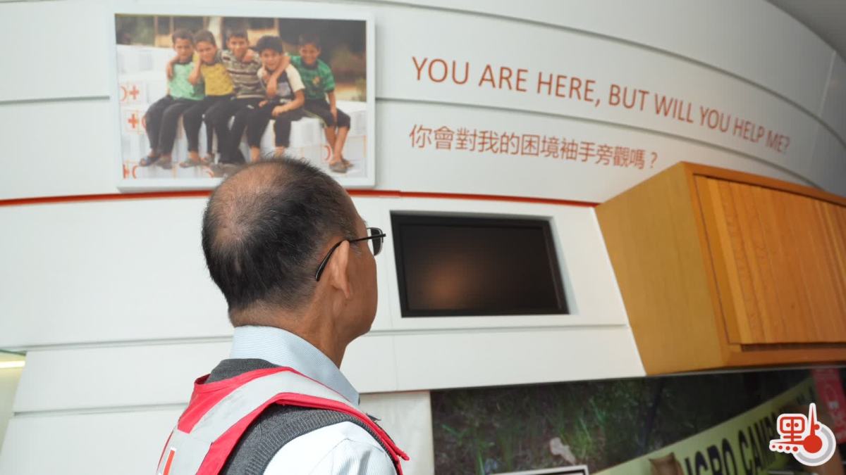 在香港紅十字會總部大樓,牆上的標語寫着:「你會對我的困境袖手旁觀嗎?」歐耀佳說,他很喜歡這句話。