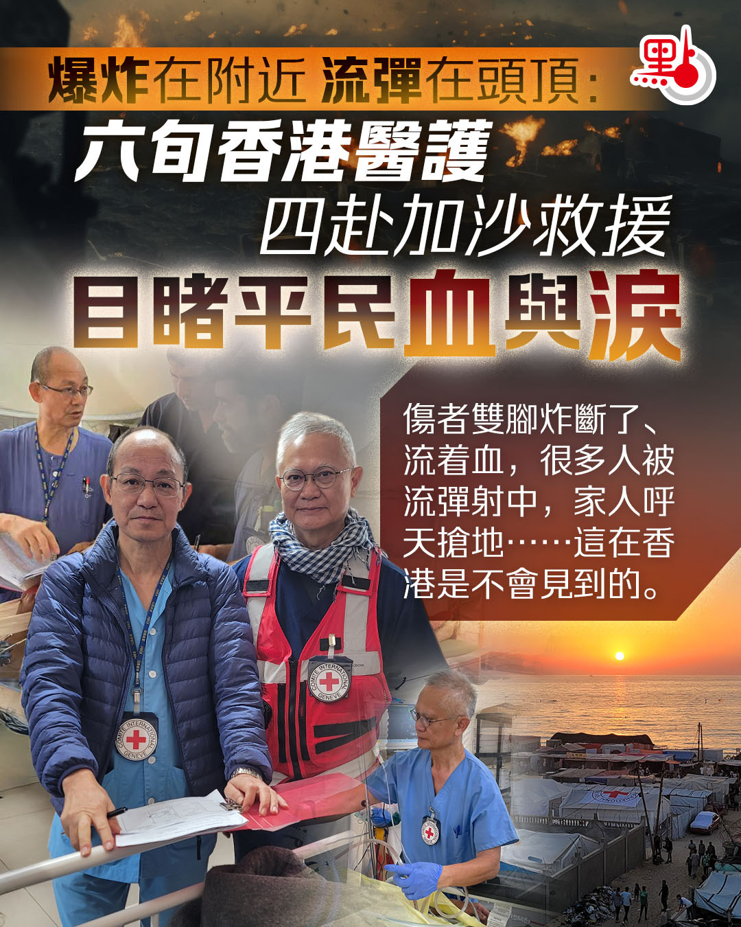 前往戰地進行人道救援的條件極高,不僅需要扎實的專業經驗,還需具備極強的抗壓能力,且能適應惡劣的環境。迄今為止,全港只有六名醫護人員曾經被派往加沙。資深外科醫生歐耀佳及資深護士梁偉賢正是其中兩位,他們日前在香港接受點新聞專訪,講述戰地救援的酸甜苦辣。