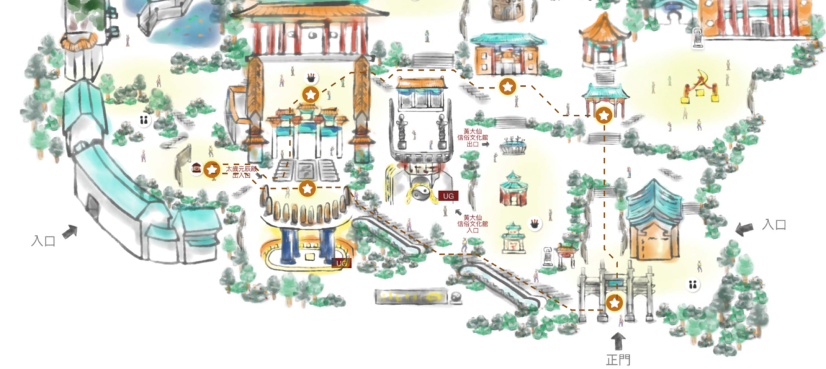 參神路線:正門(入園)→第三參神平台(點香)→第一參神平台大殿前(上香)→再到三聖堂(上香)、孟香亭(上香)→正門(離開)