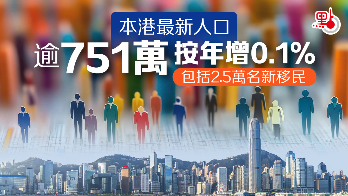 【點新聞報道】根據政府統計處今日(12日)發表的數字顯示,2025年年底香港人口的臨時數字為7510800人。與2024年年底人口7500600人比較,增加10200人,升幅為0.1%。