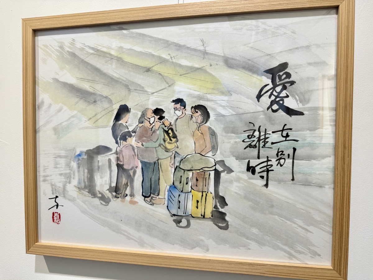 至於這份感悟從何而來,我們可以從展覽作品《愛在離別時》找到答案。這幅畫作描繪移民潮期間,一家人在機場道別時難離難捨的溫情。事實上,關嘉亮也曾移民澳洲,在移民初期一度迷惘到快要放棄水墨畫,後來通過教當地小朋友書畫才最終「找回屬於自己的那條路」。