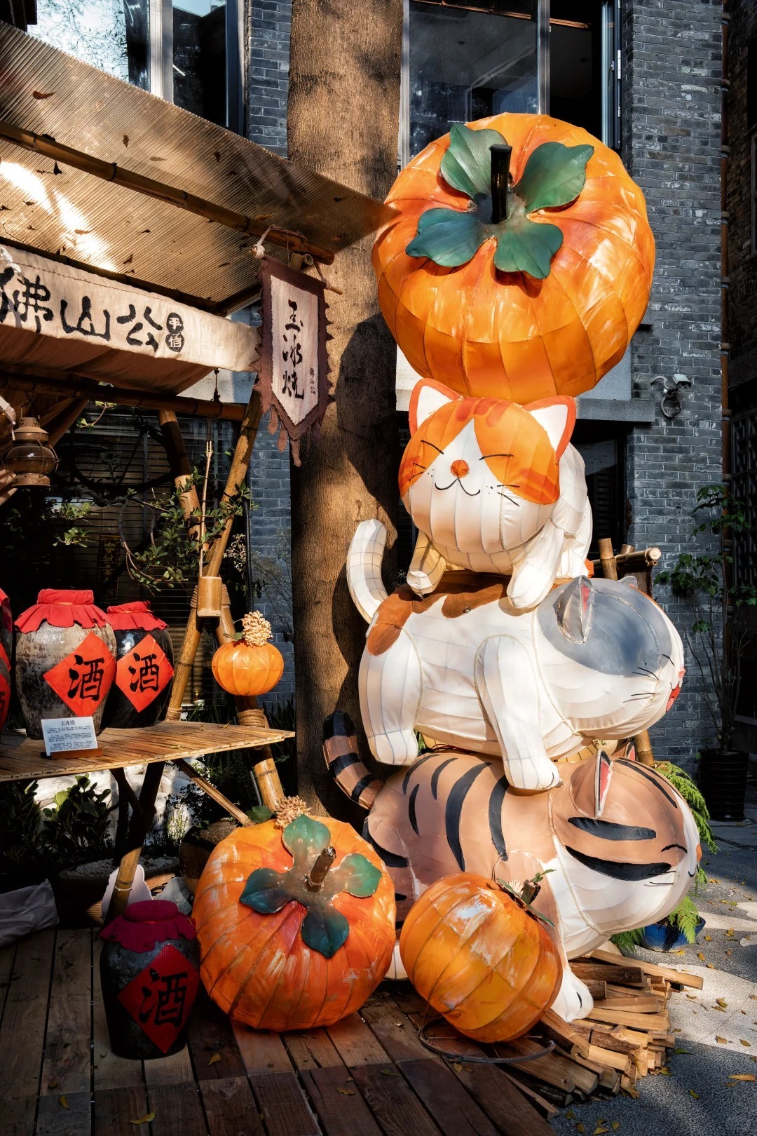 柿子、假石山與貓咪花燈相映成趣,門口的花燈裝置含蓄雅緻。不妨入院歇腳,嘗一碗地道小吃,再看那隻蹲在屋檐下發光的嶺南肥貓——憨態可掬,已是今春最受歡迎的「合影搭子」。