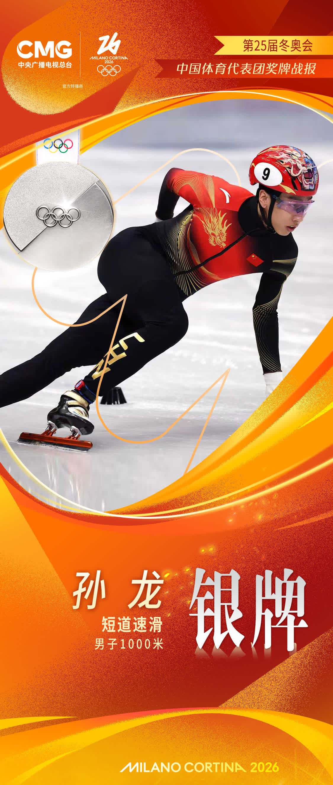 米蘭冬奧|孫龍奪短道速滑男子1000米決賽銀牌