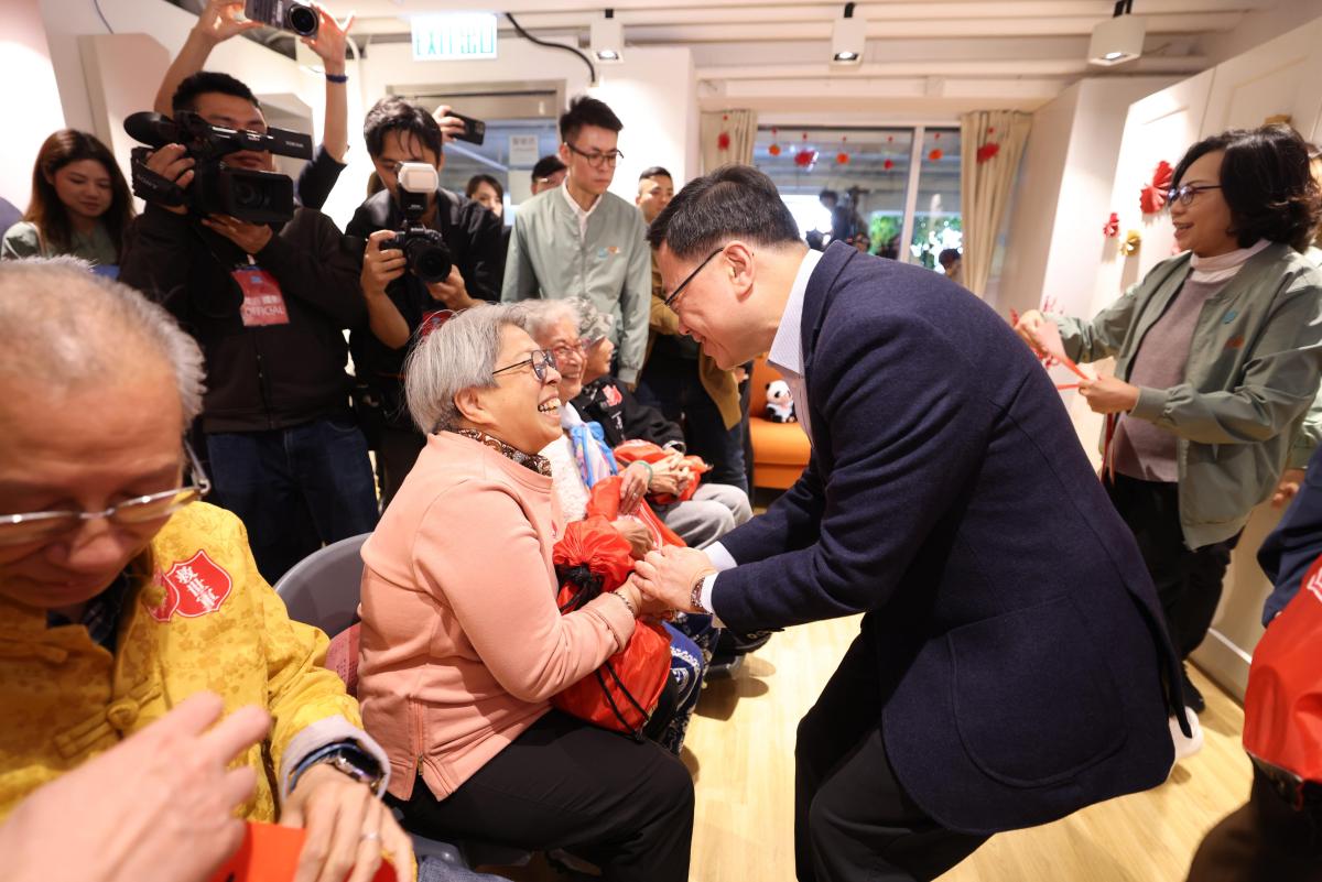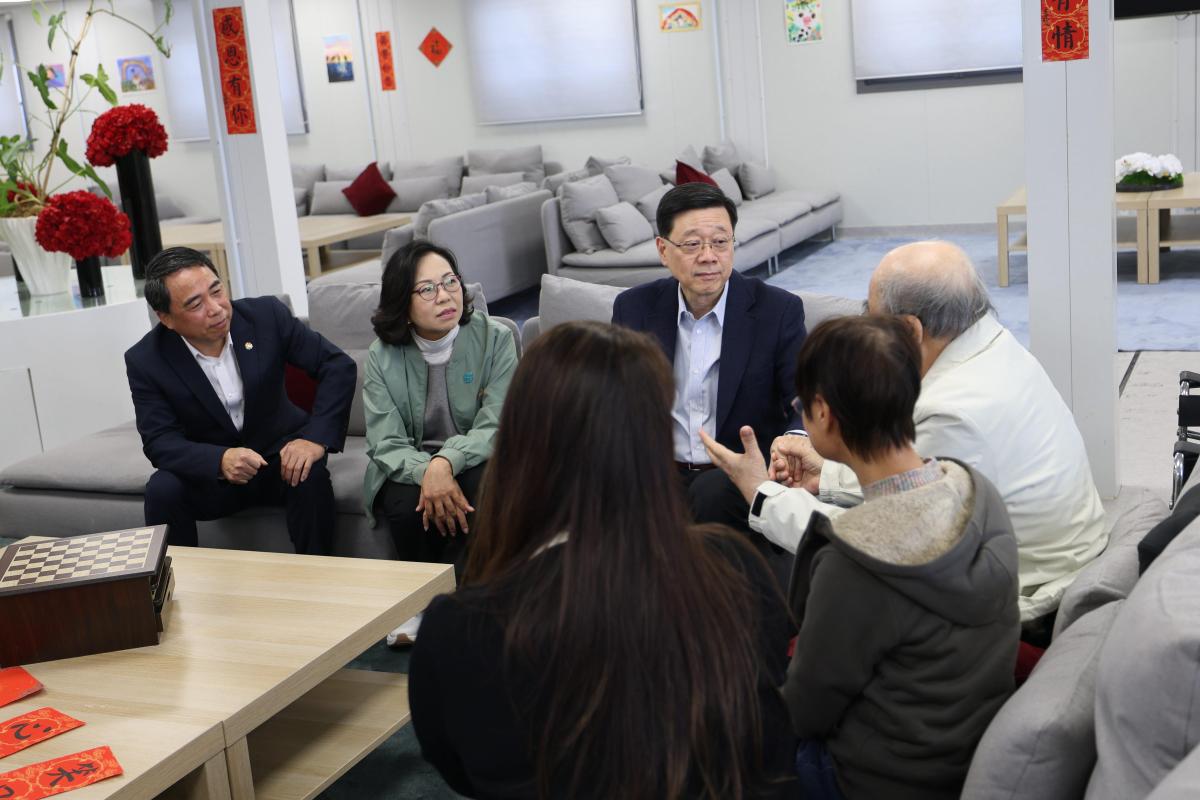 李家超隨後轉往長者服務中心,和一眾「老友記」玩遊戲,傾談近況。李家超表示,長者為香港創造更多價值,自己也是得益者之一。他又指,社區服務「沒有最好,只有更好」,感受到社區配套一直進步,看到長者們精神奕奕,他也感到很安慰,希望大家能生活在和諧社區。