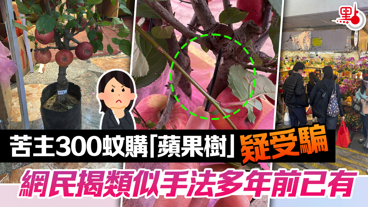【點新聞報道】距離農曆新年只剩數日,不少市民都會選購年花作為家中擺設。日前,有網民於網上訴苦,稱在商場花檔以300元購入一棵「蘋果樹」疑似受騙,帖文引發熱議。