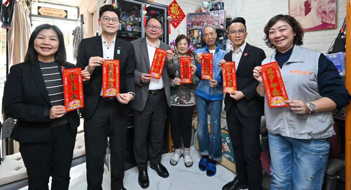【點新聞報道】農曆新年是與摯愛親朋共聚一堂,傳遞祝福和關愛的季節。政務司司長陳國基今日(13日)下午聯同民政及青年事務局常任秘書長李百全、觀塘民政事務專員、多位觀塘區議員及關愛隊成員,到觀塘順利邨探訪兩戶家庭,送上來自特區政府的節日問候與祝福。