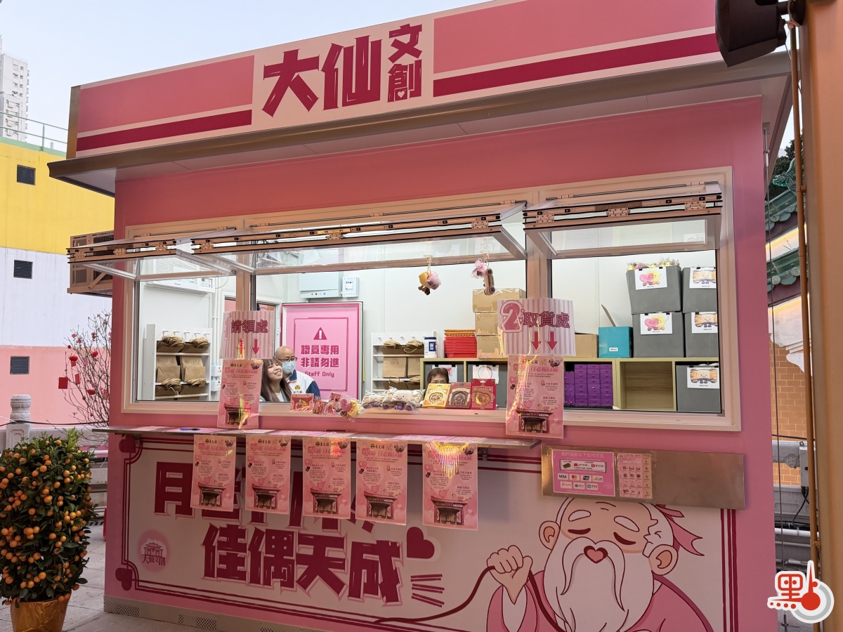 【點新聞報道】今年情人節接近農曆新年,為延長節慶氣氛,嗇色園黃大仙祠於情人節前夕及正日(2月13日及14日)在新月老殿舉辦主題活動,並延長開放時間至晚上9時。設在月老殿旁的文創店「大仙文創」,亦於今日(13日)正式開幕。