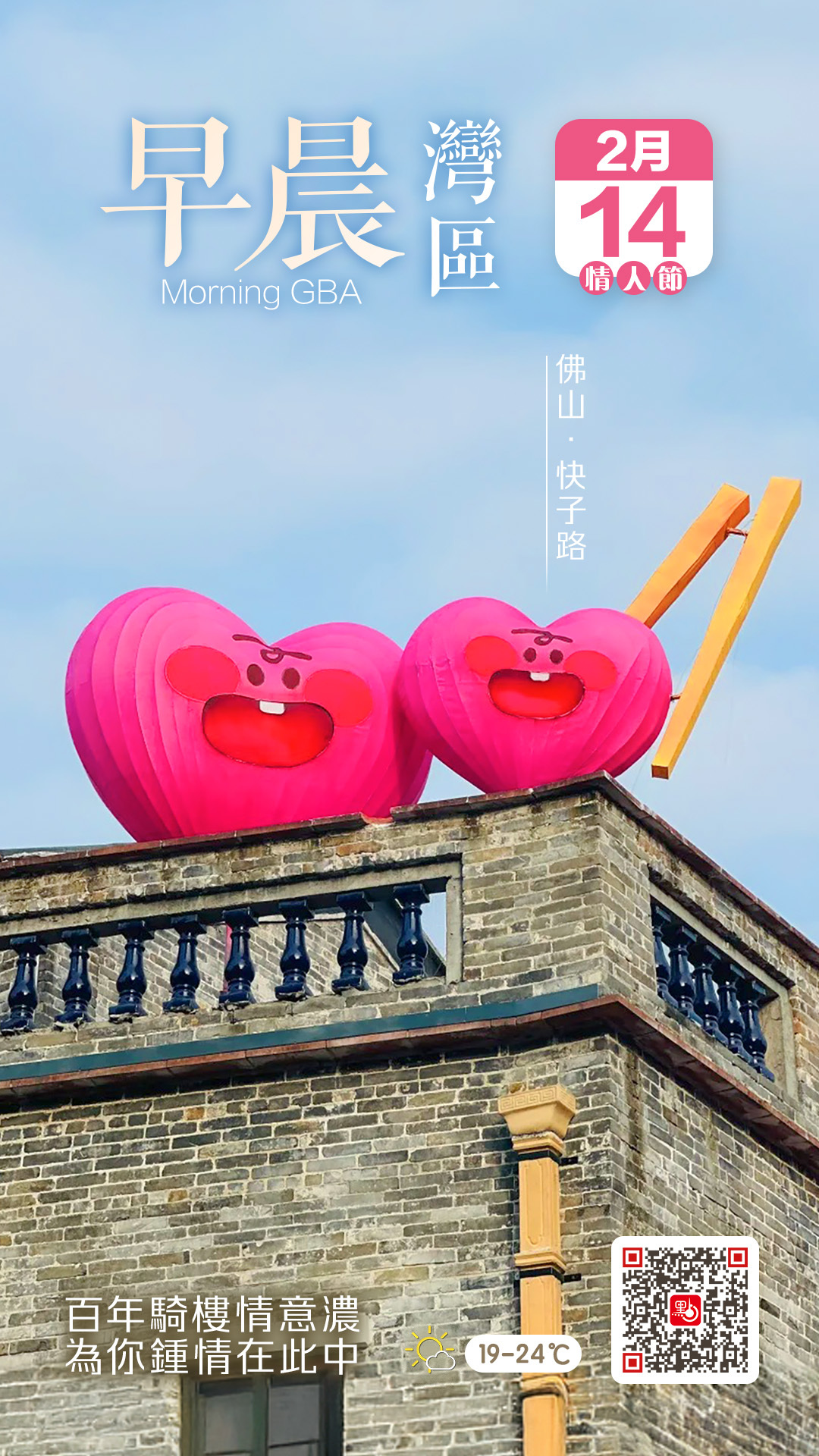 【點新聞報道】「為你鍾情,傾我至誠,請你珍藏,這份情,然後百年,終你一生,用那真心痴愛來作證。」今日(14日)一早,點新聞便以張國榮這首《為你鍾情》為讀者開啟浪漫序章。情人節已至,有情人終成眷屬。你打算和愛人如何度過這一天?又為他準備了怎樣的禮物?此刻,佛山市快子路的街角已掛起心形公仔,靜靜守候着每一對攜手而來的戀人!