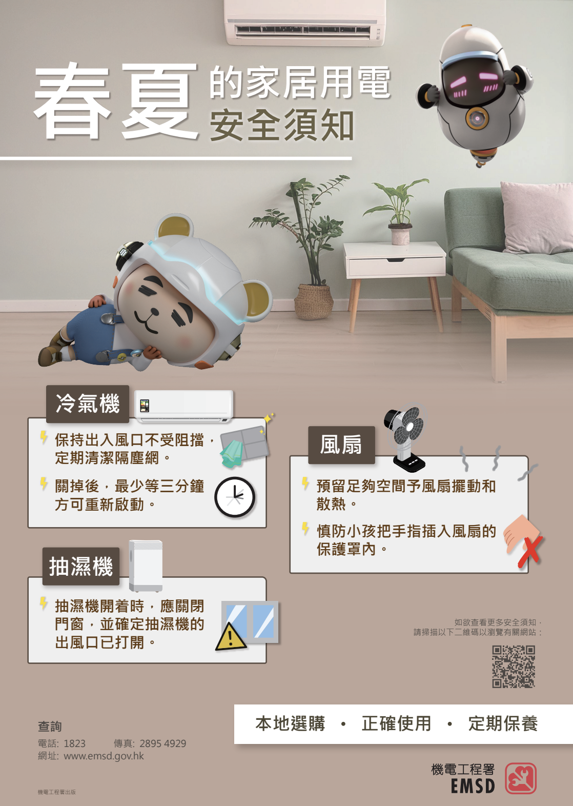 「本地購買,正確使用,定期保養。」梁志滔說,安全意識長留心中,培養用電好習慣,市民只要在本地有信譽的店舖購買家用電器產品、按照說明書正確使用產品及為其作定期保養,便可以安全放心地使用這些產品。