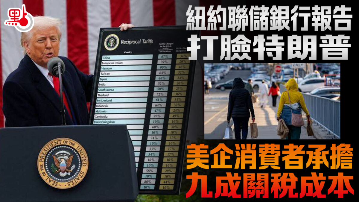 紐約聯儲銀行是次研究結果指出,從去年1月至8月,美國進口商承擔了多達94%關稅成本。到去年11月,雖然海外出口商的負擔略增,但美國進口商承擔的關稅成本仍達86%。報告總結稱,美國消費者和企業會繼續承擔2025年高額關稅帶來的大部分經濟負擔。