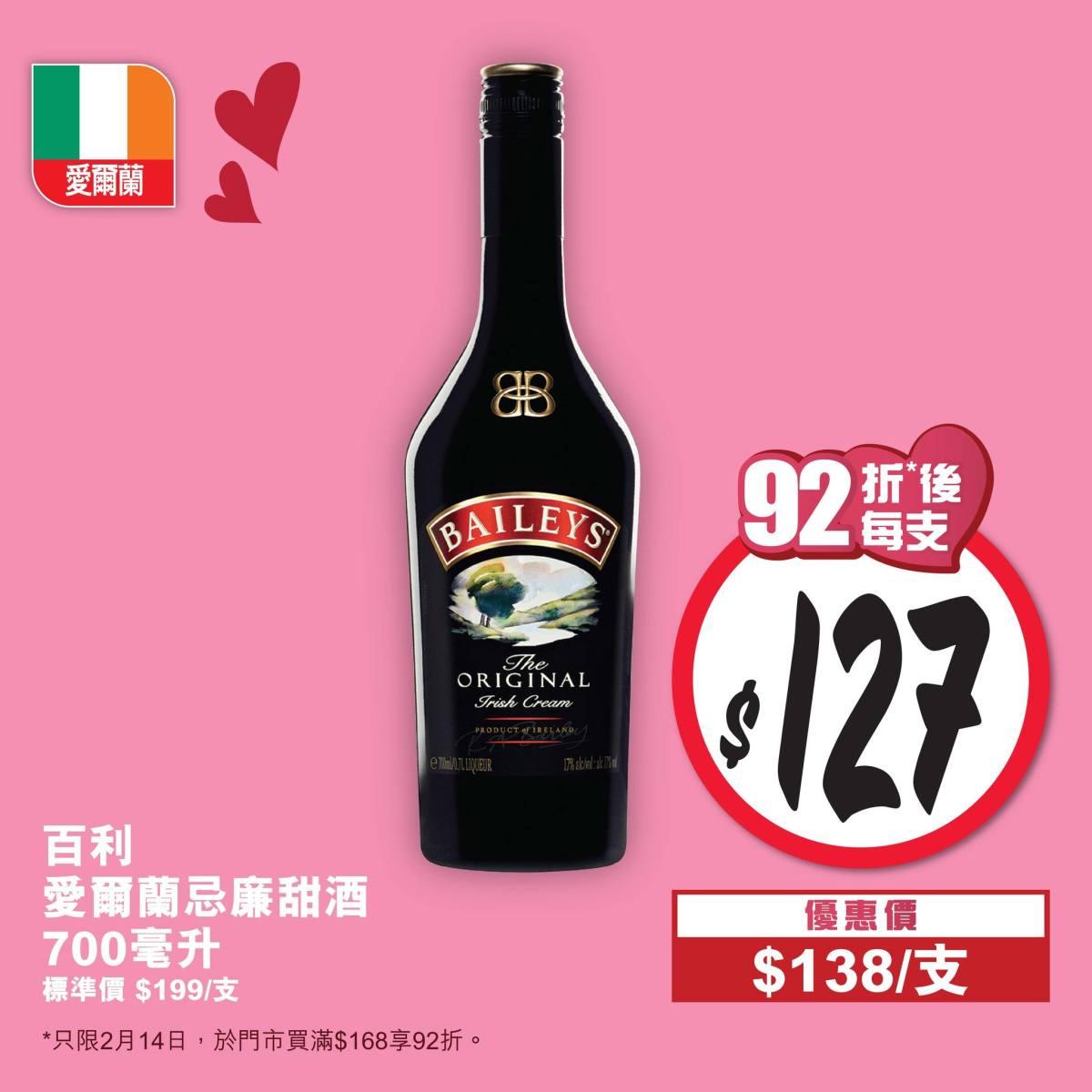 【點新聞報道】惠康全線門市2月14日情人節當天推出一日限定折扣,買滿$168即享92折,購買任何紅/白餐酒滿$300即同時再享85折。