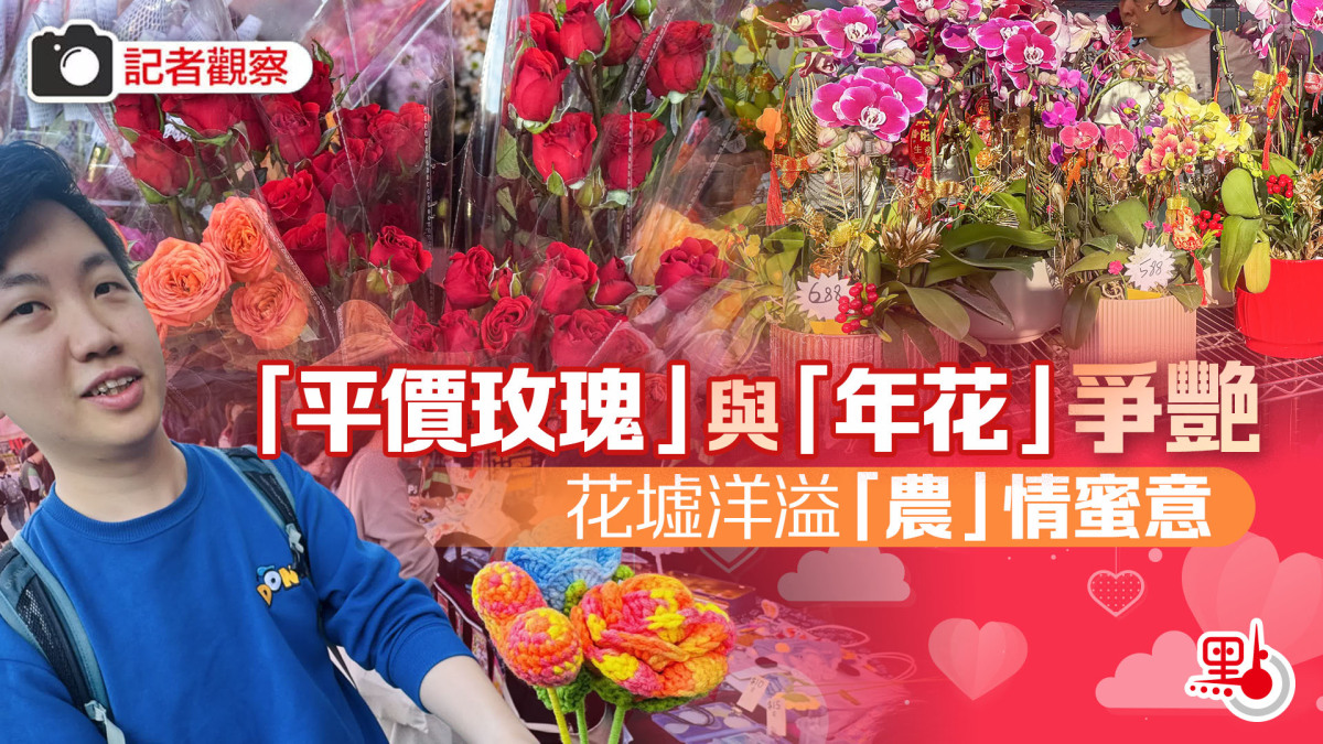 【點新聞報道】今日(14日)是情人節,恰逢農曆新年臨近,本港花墟一片熱鬧景象,瀰漫「雙節」氛圍,象徵情人節的玫瑰與新春年花蝴蝶蘭等「平分秋色」。不少市民在選購年花的同時,亦不忘為伴侶帶上一束玫瑰,讓花墟成為「農」與「情」交織的樂園。