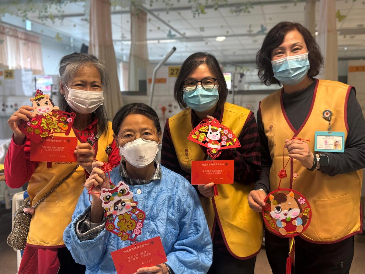 明愛醫院健康資源中心的義工團隊早前為病人特製印有小馬圖案的新年掛飾,並帶同掛飾到病房探訪住院病人,送上寫滿節日祝福的心意卡,讓病人感受馬年的喜慶。