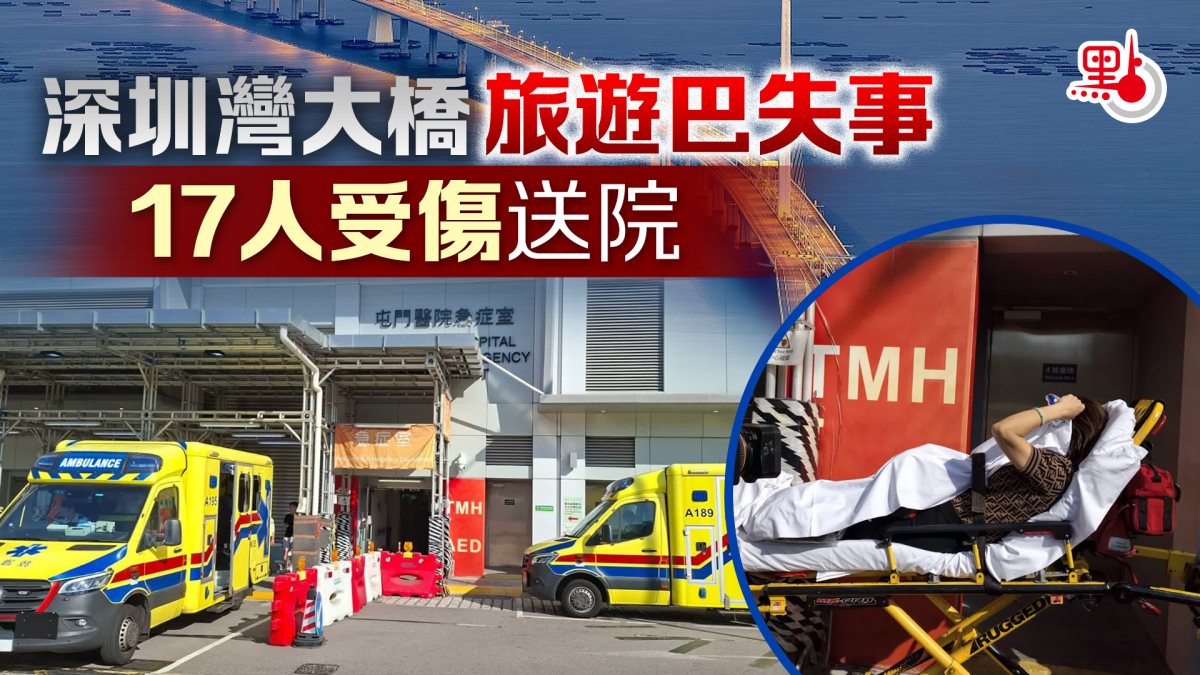 【點新聞報道】深圳灣公路大橋發生交通意外,今日(15日)接近下午2時,一架旅遊巴在深圳灣公路大橋失事,10男7女受輕傷,當中9人送屯門醫院,8人送天水圍醫院治理。警方事後拘捕涉案司機。