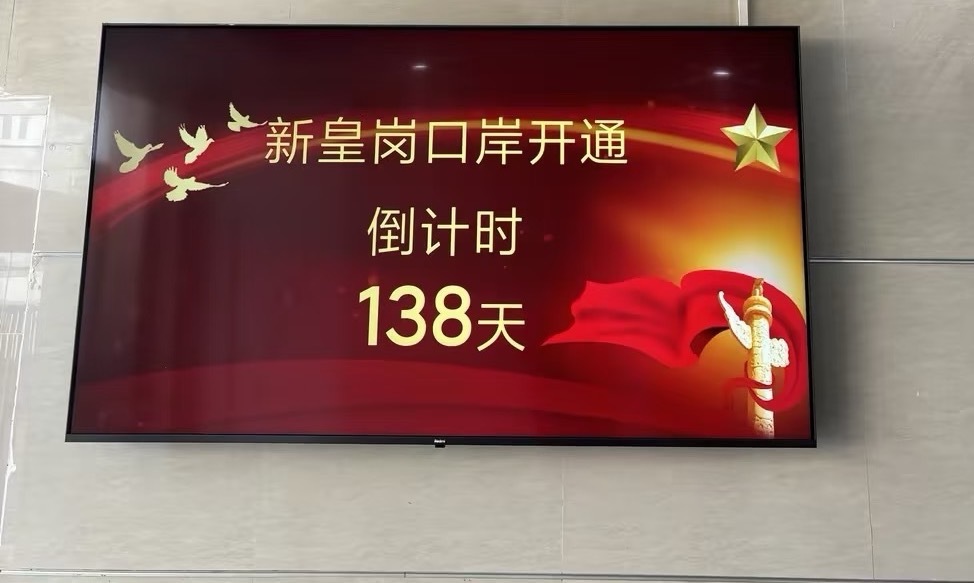 網上近日流傳一張相片,顯示一個掛在牆上的電視屏幕,寫有「新皇崗口岸開通倒計時138天」。以帖文發布日,即2月13日起計算,預料開通日為7月1日。屏幕同時展示了「深圳皇崗海關黨委」發出的「2026年新春慰問信」,稱今年「皇崗海關也將迎來轉型發展和新口岸建設開通的重要時刻」。