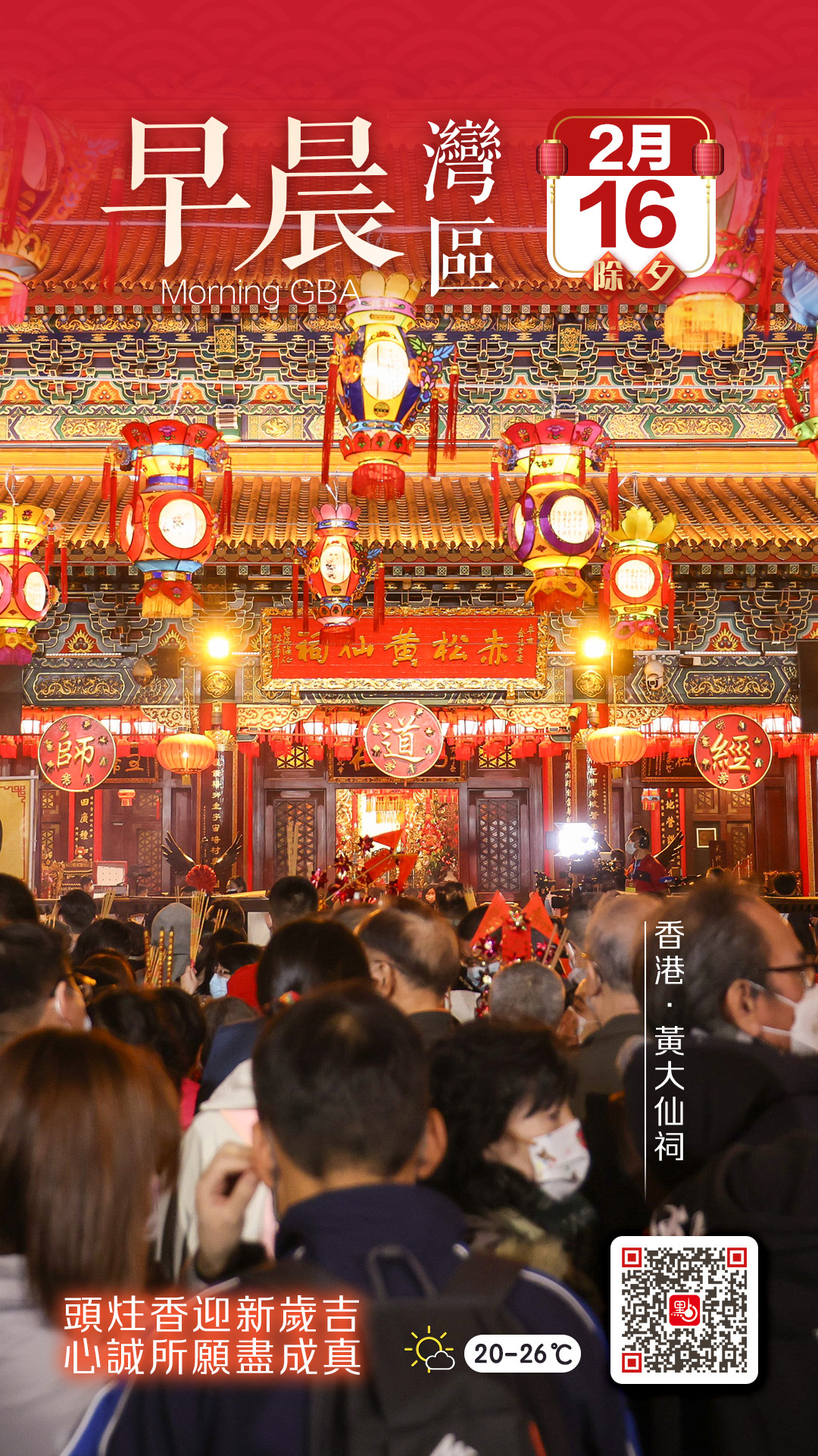 【點新聞報道】不少人會在農曆新年上頭炷香,今年年廿九(2月16日),嗇色園黃大仙祠將於當晚9時正開放入園。善信需先在祠外的廟宇廣場及黃大仙廣場排隊,進入第一參神平台等候,於子夜11時(蛇年尾炷香)或凌晨12時(馬年頭炷香)上香。黃大仙祠將通宵開放至年初一(2月17日)晚上9時。
